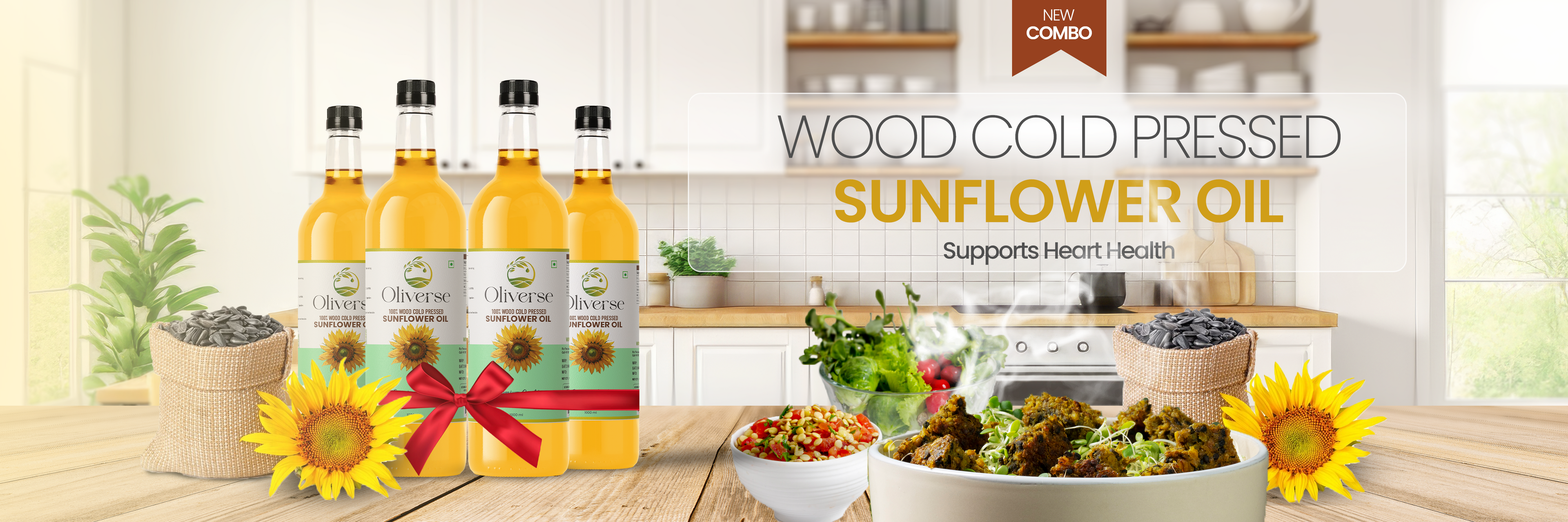 Enjoy the goodness of Oliverse Cold-Pressed Sunflower Oil, now in a convenient 4L combo pack (4 x 1L bottles). Extracted using the wood-pressed (cold-pressed) method, this unrefined oil retains its natural nutrients, light texture, and mild flavor, making it an excellent choice for everyday cooking.